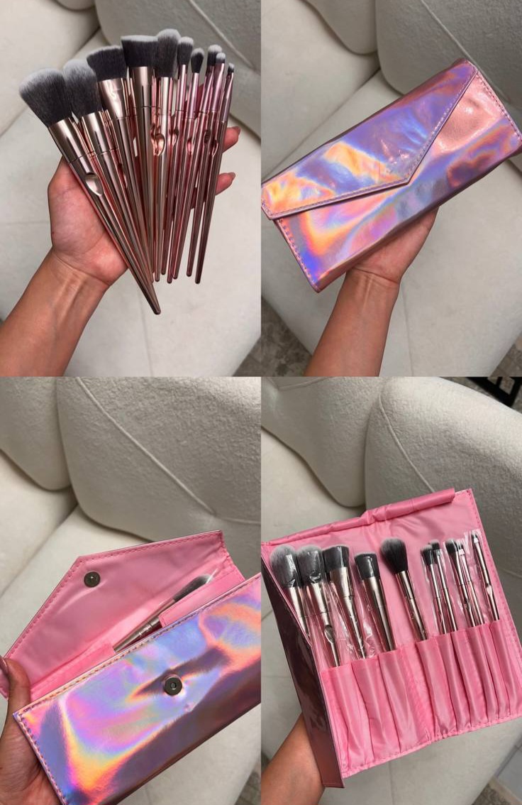 ست براش10تیکه کیف صورتی هلوگرامی