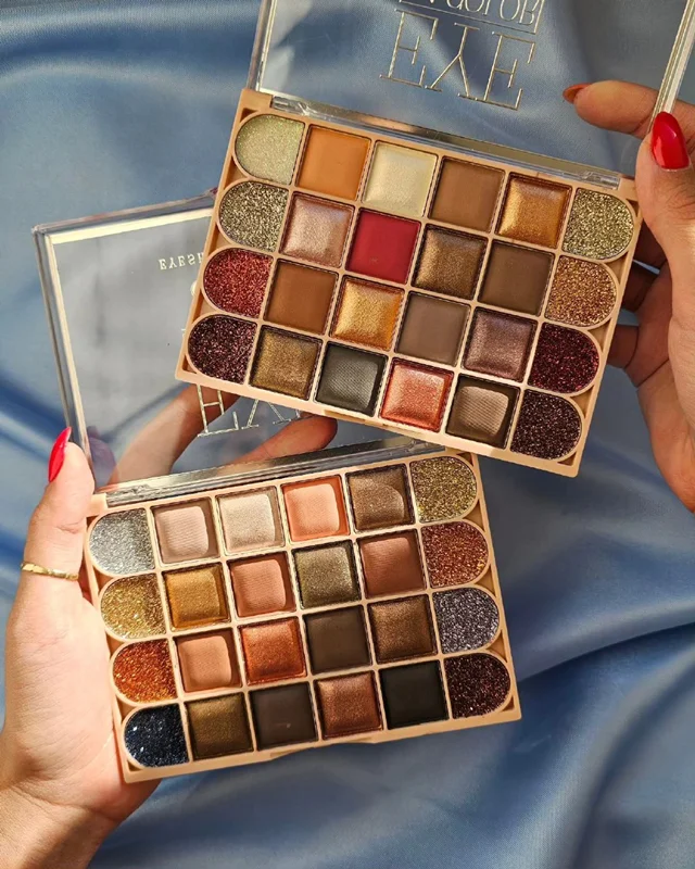 این محصول پالتی حاوی ۸ رنگ گلیتری و ۱۶ رنگ نود،گرم،ملایم و جذابه🔥